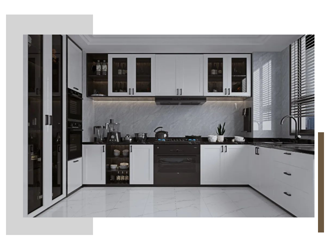 自帶高級的森綠與柔光烤漆相互碰撞,搭配安卡拉白大理石紋,創(chuàng)造輕盈感的同時提高了整潔度,讓人仿佛置身于大自然中,舒心、平靜。