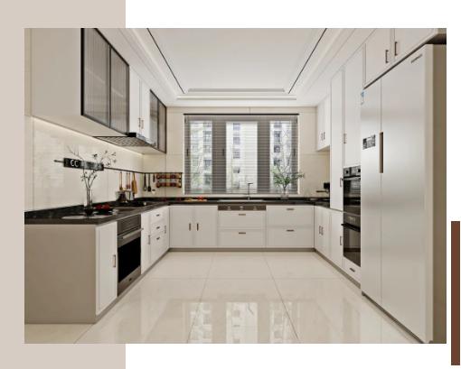 瑞金米黃,以米黃色作為磚面底色,與細(xì)膩清晰的白色紋理相互交融,恍如陽(yáng)光灑落于大地之上。極具質(zhì)感的U型櫥柜,在滿足儲(chǔ)物需求的同時(shí),細(xì)微之處帶給家居生活無(wú)限的柔和美感。