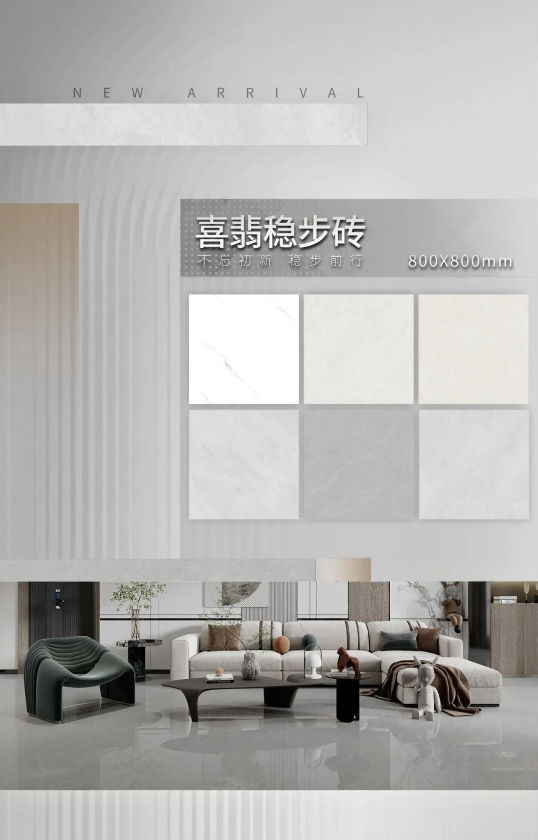 ▲喜翡穩步磚-JHCNM8LW04A蘭斯灰-800x800mm(地面)