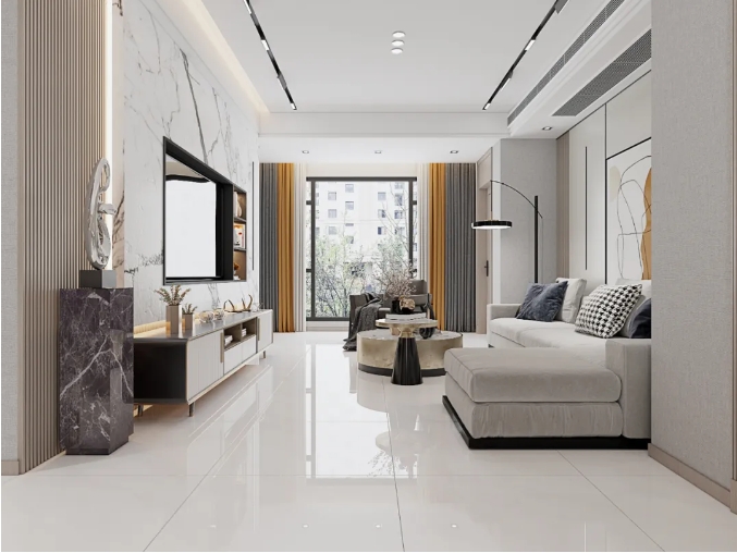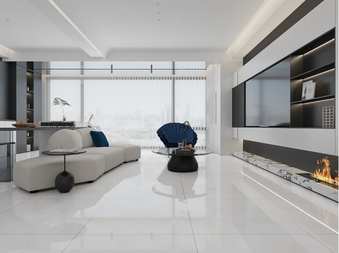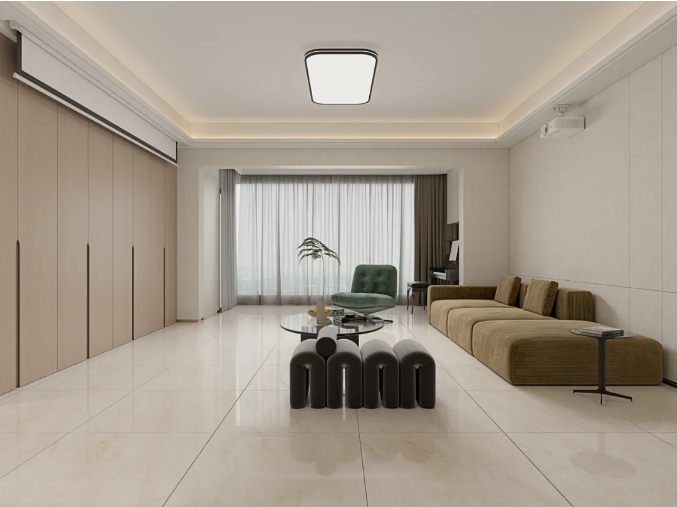 550g更厚釉量,經過拋光特殊模塊加工,有效避免瓷面水波紋、R角、輥棒印,當指尖劃過磚面,觸感如凝脂般均勻細膩,讓人沉醉其中,流連于平整美學間。