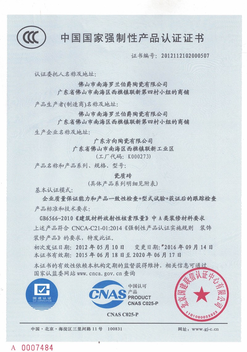 方向CCC認證證書